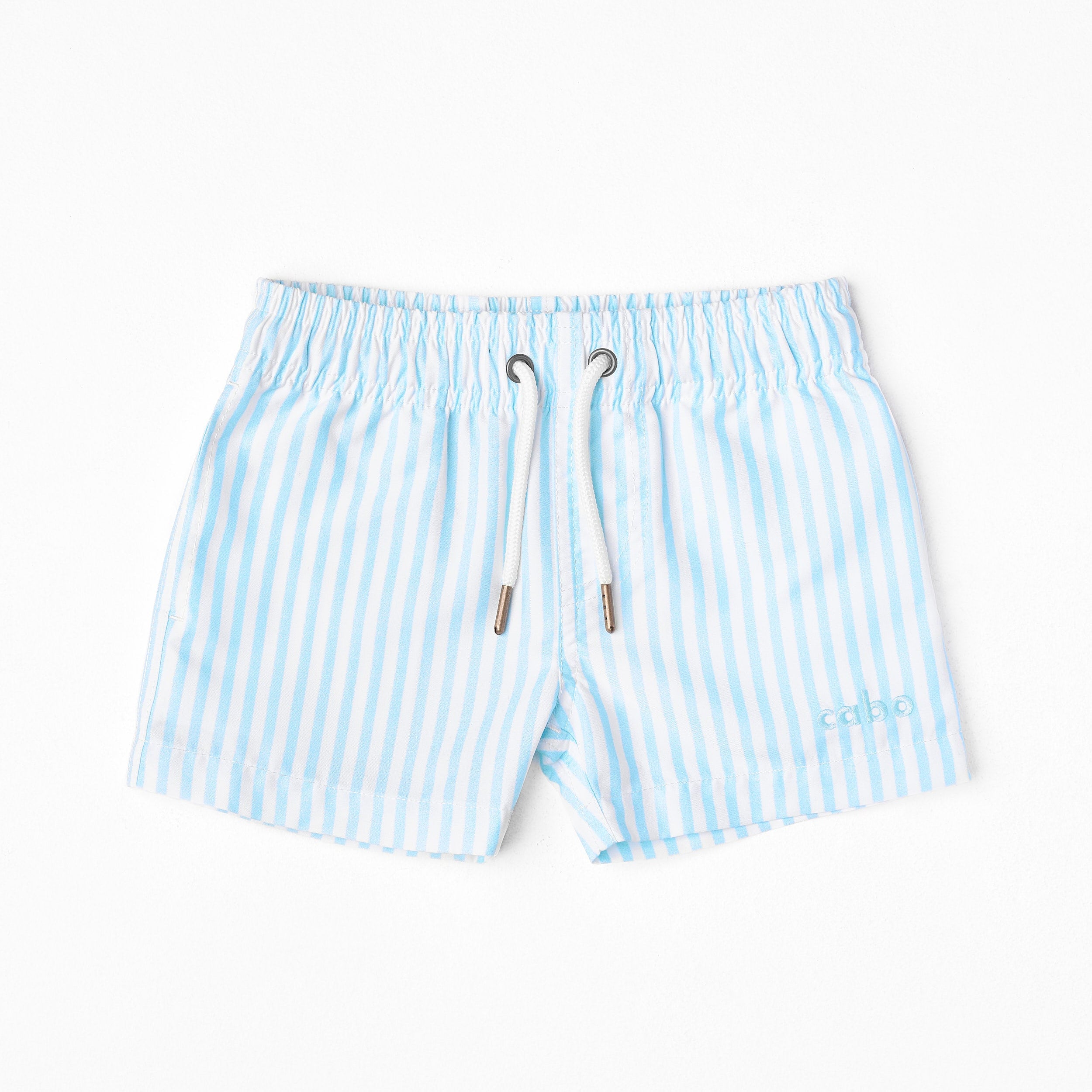 Made for sunny days and endless splashing. Our Blue and White Striped Swim Shorts are light, comfy and easy to wear. Designed with a soft elastic waistband and adjustable drawstring so little ones can move, swim and play freely all summer long. Our swim shorts also feature 2 side pockets.